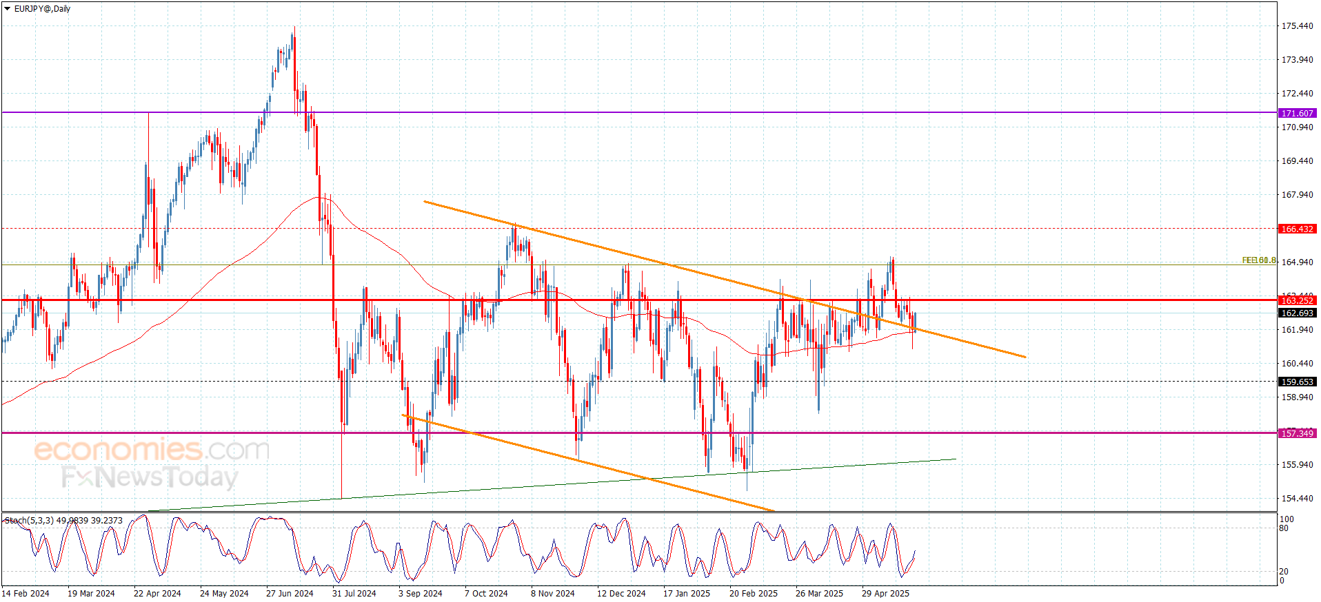 The expected trading range for today is between 162.00 and 163.35