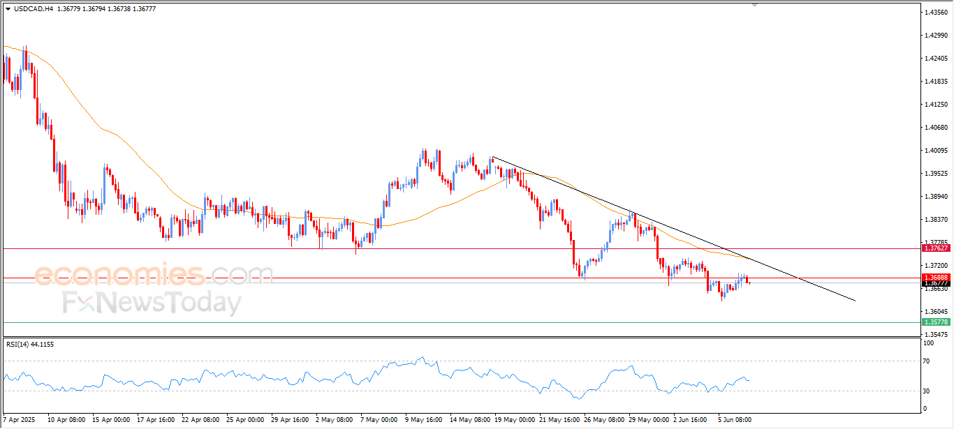 The (USDCAD) price declined in its last intraday trading, due to the stability of the key resistance at 1.3690, amid the dominance of the main bearish trend on the short-term basis and its trading alongside a minor bias line on the short-term basis, with the continuation of the negative pressure that comes from its trading below its EMA50, besides the beginning of the negative signals on the (RSI), after reaching overbought levels.