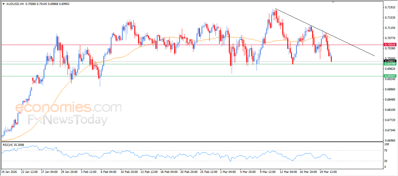 The AUDUSD pair kept declining during its latest intraday trading, amid the dominance of bearish corrective wave on short-term basis, with its trading alongside supportive trend line for this path, besides the continuation of the dynamic and negative pressure that is represented by its trading below EMA50, reducing the chances of the price full recovery on near-term basis, especially with the emergence of negative signals from the relative strength indicators.