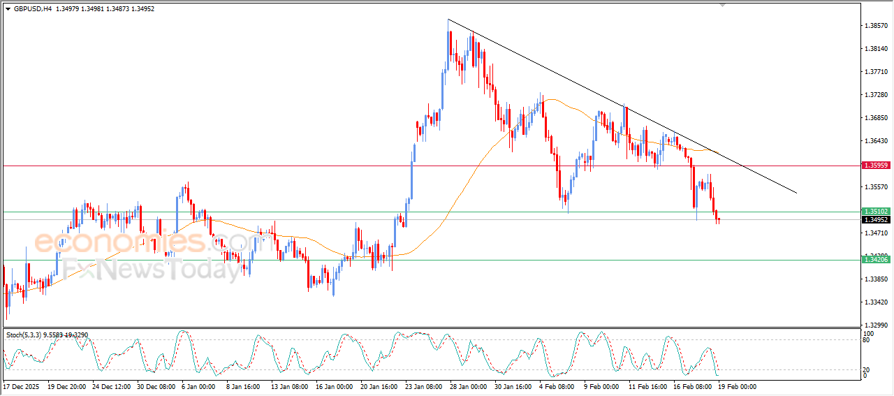 GBPUSD kept declining in its last intraday trading, to break 1.3510 support in its last intraday trading, this support represents an expected target in our previous analysis, amid the continuation of the negative pressure due to its trading below EMA50, reinforcing the stability and dominance of the bearish corrective trend on short-term basis, with its trading alongside supportive trend line for this path, besides the emergence of negative signals from relative strength indicators, despite reaching oversold levels.