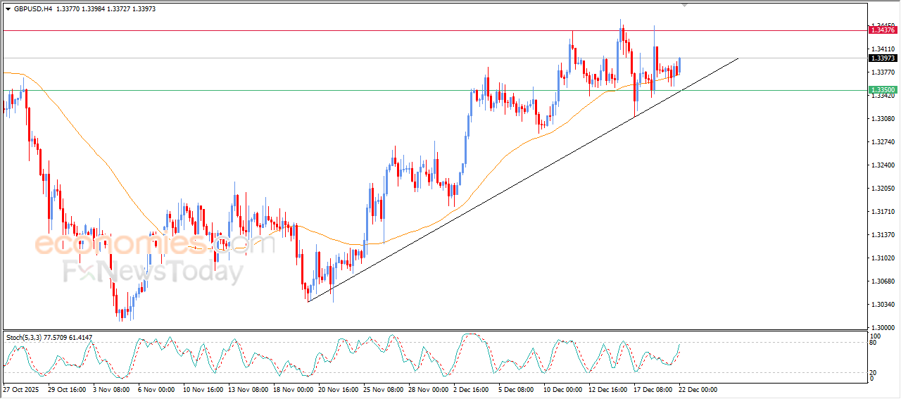GBPUSD rose in its last intraday trading, as it is leaning on EMA50’s support, gaining bullish momentum that helped it to achieve these gains, amid the dominance of the main bullish trend and its trading alongside supportive trend line for this track, besides the emergence of positive signals on the relative strength indicators, despite reaching overbought levels.
