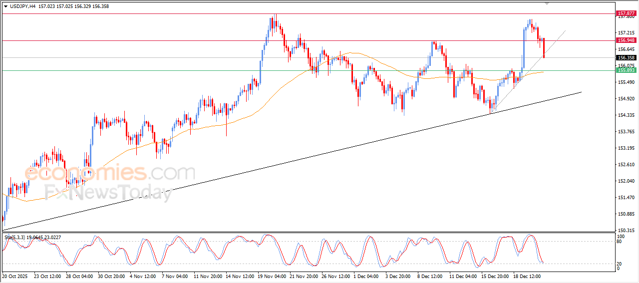 The (USDJPY) slipped lower in its last intraday trading, breaking 156.95 support, which led to increase the bearish momentum to surpass minor bullish trend line on the short-term basis, which intensifies the negative pressures.