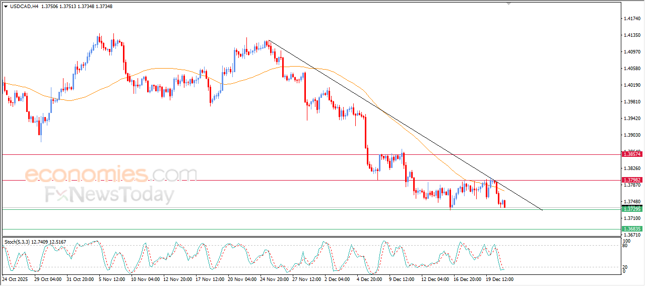 The (USDCAD) price declined in its last intraday trading, due to the stability of 1.3800 resistance, accompanied by reaching EMA50’s resistance, which put the price under intensive negative pressure, amid the dominance of the main bearish trend on the short-term basis and its trading alongside trend line, preparing to break 1.3730 key support, on the other hand, we notice the emergence of positive overlapping signals on the relative strength indicators, after reaching oversold level, which might reduce the upcoming losses.