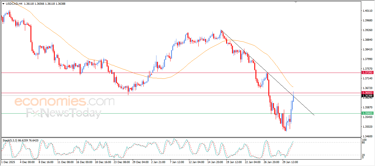 The (USDCAD) price extended its strong gains in its last intraday trading, supported by the emergence of positive signals from relative strength indicators, attacking minor bearish trend line on short-term basis, accompanied by its attempts to get rid of the negative pressure of EMA50. If the price manages to reach this level, it will announce its full recovery and reinforce its gains extended on a near-term basis.