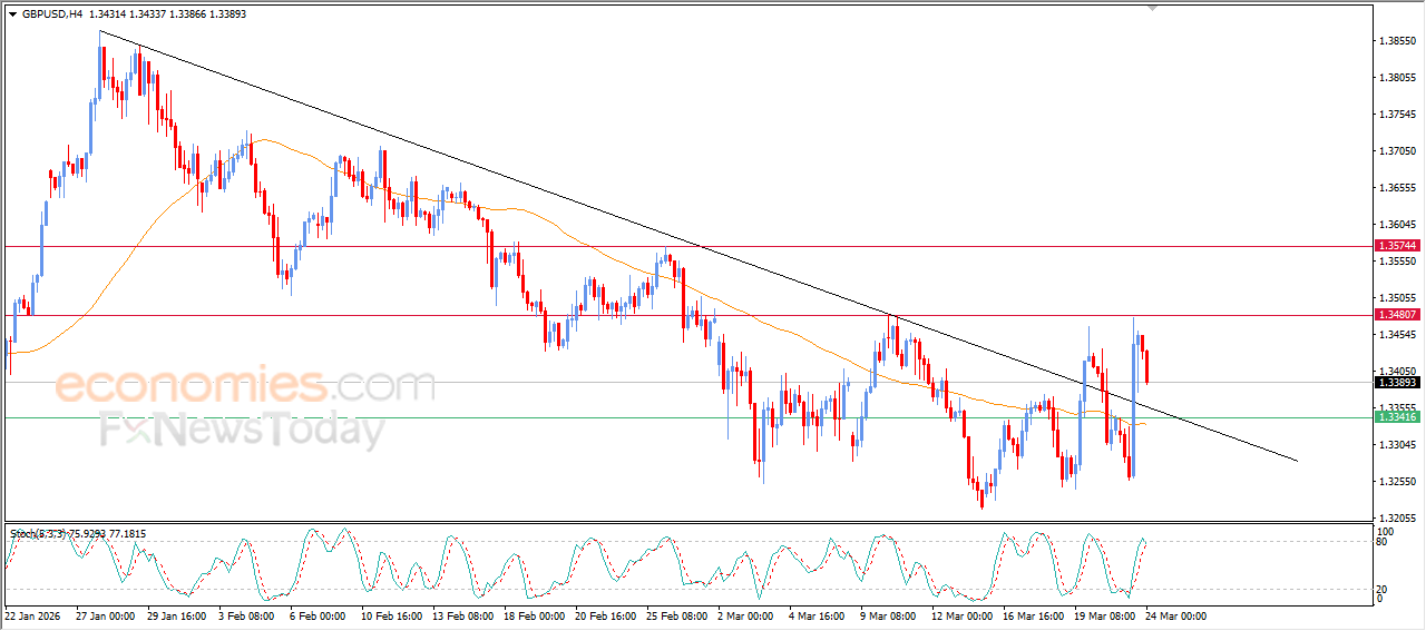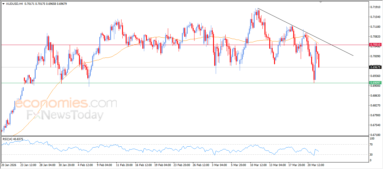 Earlier, the pair was affected by breaking out of an ascending price channel that contained its short-term trading, while it continues to face negative dynamic pressure as it trades below EMA50. This limits the chances of a full recovery in the near term.