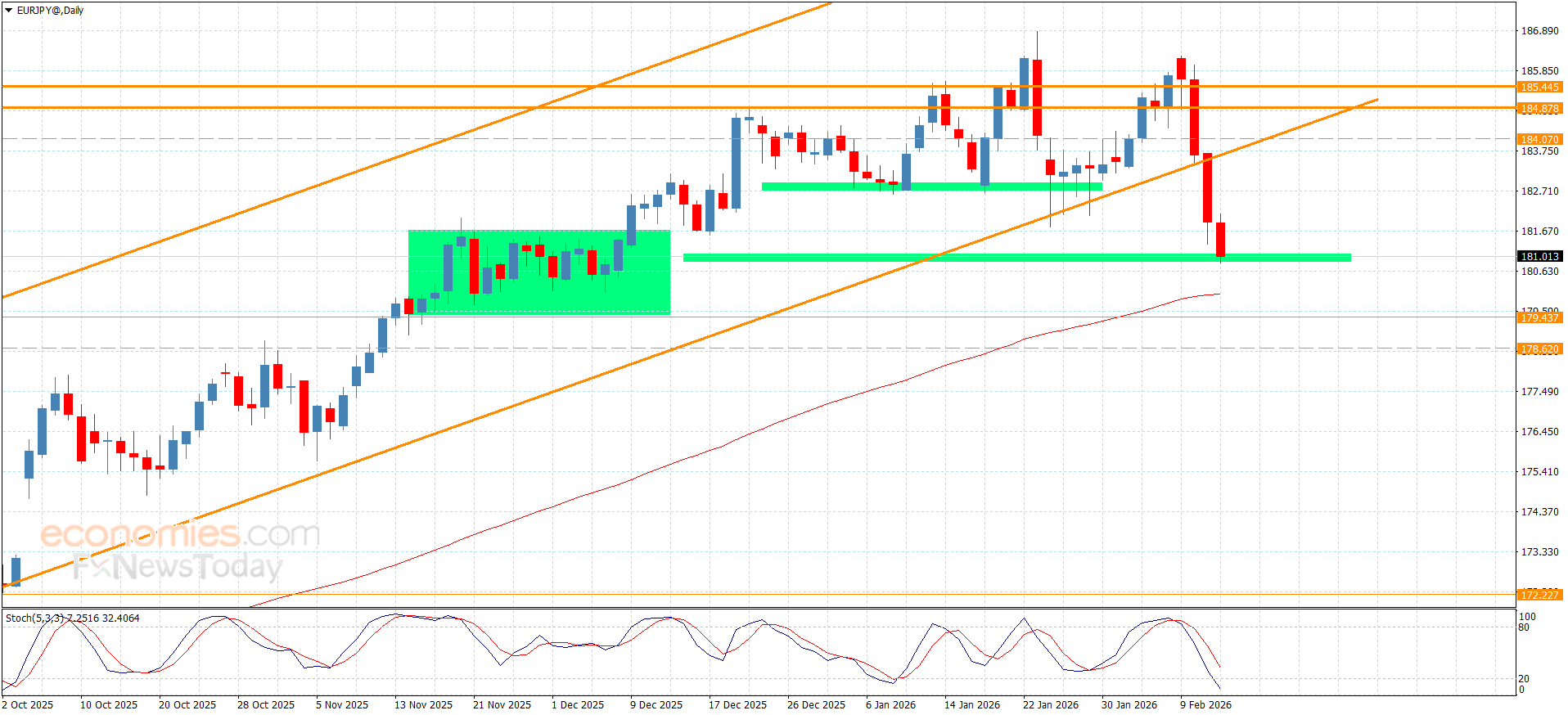 The EURJPY pair benefited from its stability below the broken bullish channel’s support, which represents a strong barrier at 183.55, activating with the negativity of the indicators by its approach from the main target at 181.05.