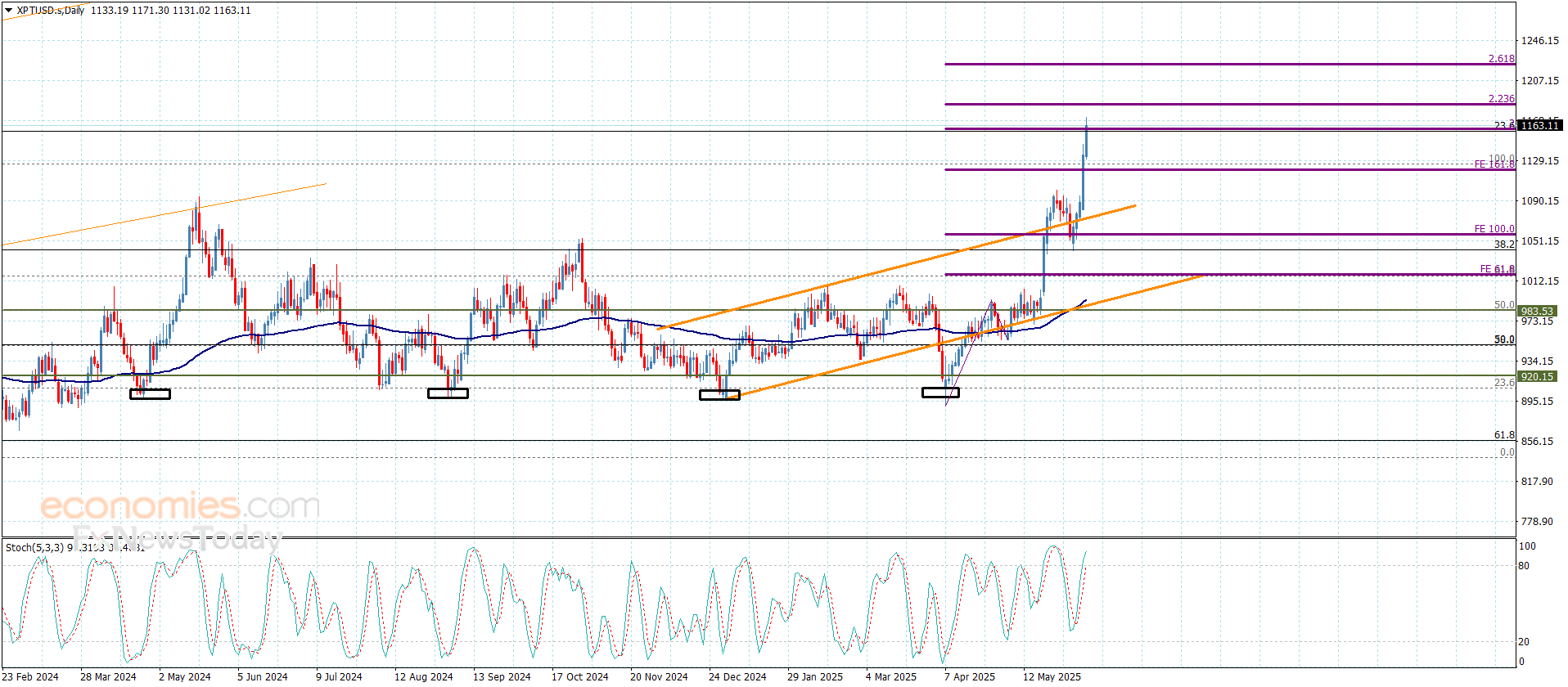 Platinum price confirmed its move to a new bullish station by surpassing the obstacle at $110.00, achieving big gains by reaching 1171.00, we expect to form extra support against the current trading, which increases the chances of achieving extra gains that might extend to $1183.00 reaching the main target near 1220.00.