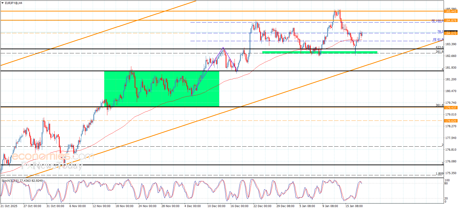 The EURJPY pair settled above the moving average 55, which forms extra support at 183.65 level, to notice its rally strongly to surpass the initial target at 184.10, announcing the continuation of the previously suggested bullish scenario.