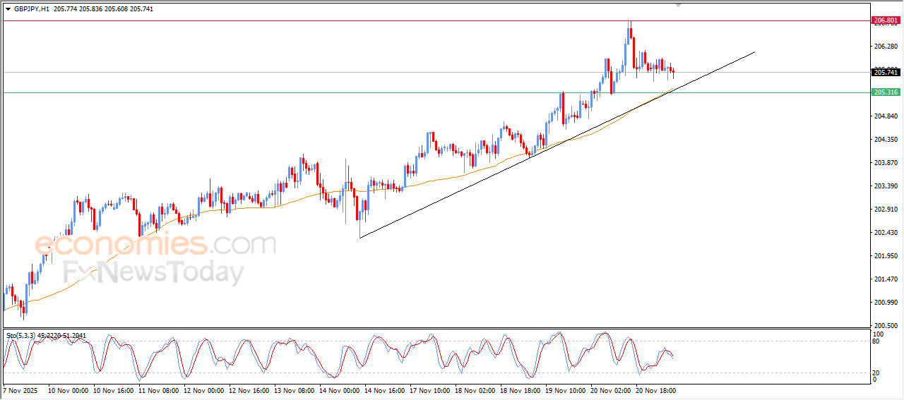 The GBPJPY pair witnessed fluctuating trading in limited sideways trading on the last intraday levels, in attempt to look for a rising low to take it as a base that may help it gain the required bullish momentum for its recovery, with the emergence of the negative signals on the relative strength indicators, amid the continuation of the dynamic support that is represented by its trading above its EMA50, reinforcing the chances of the price recovery on the near-term basis, with the dominance of the main bullish trend and its trading alongside minor trendline on the short-term basis.