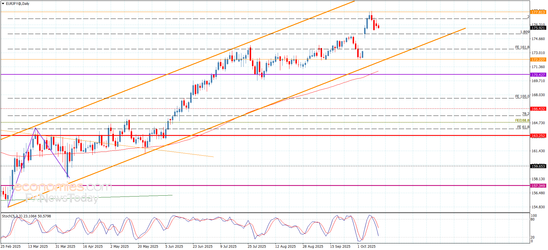 The EURJPY pair continued providing temporary trading, affected by the stability of the barrier at 177.05 to reach 175.95 again, to announce delaying the bullish attack in the current period.