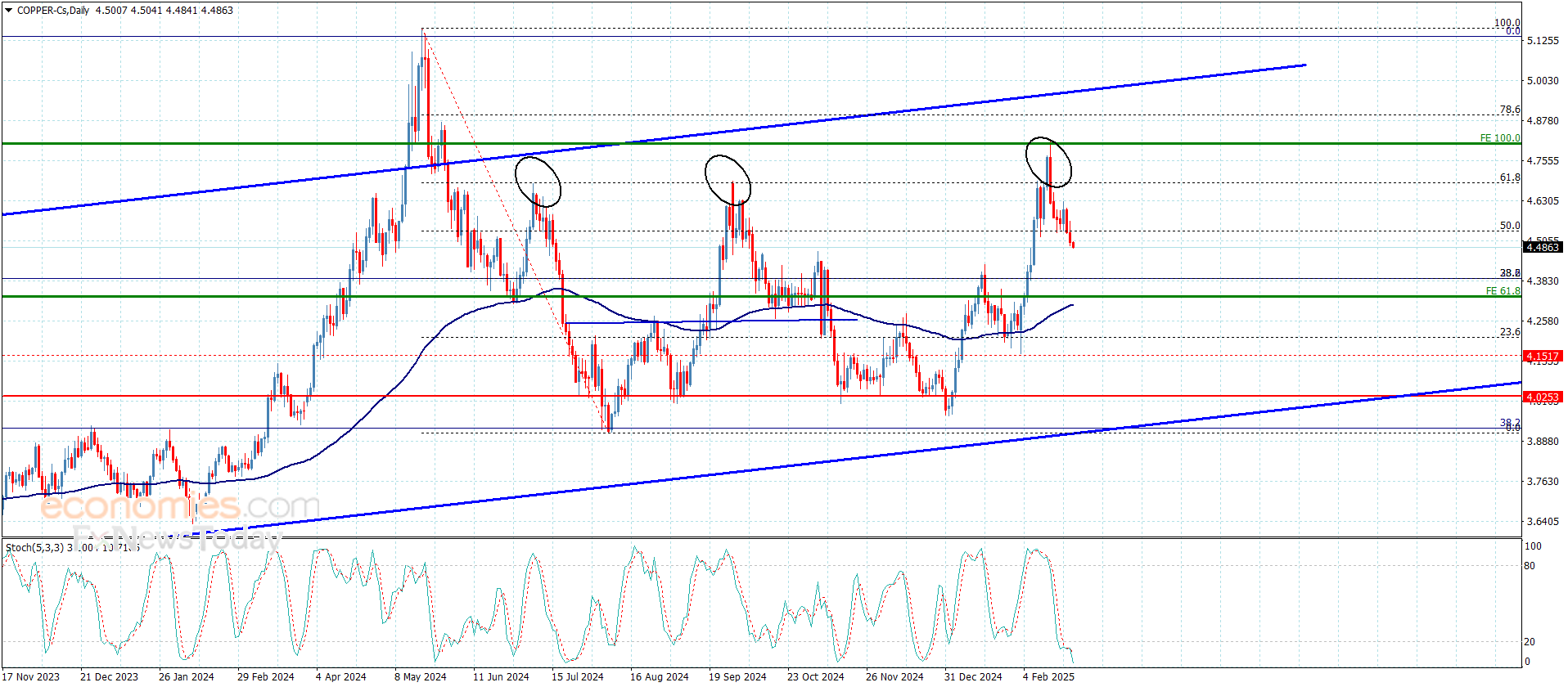 Copper price reacted to the frequent negative pressures yesterday by crawling below the additional support at 4.5300$, confirming its surrender to the correctional bearish track by settling near the previously suggested first target at 4.4600$.