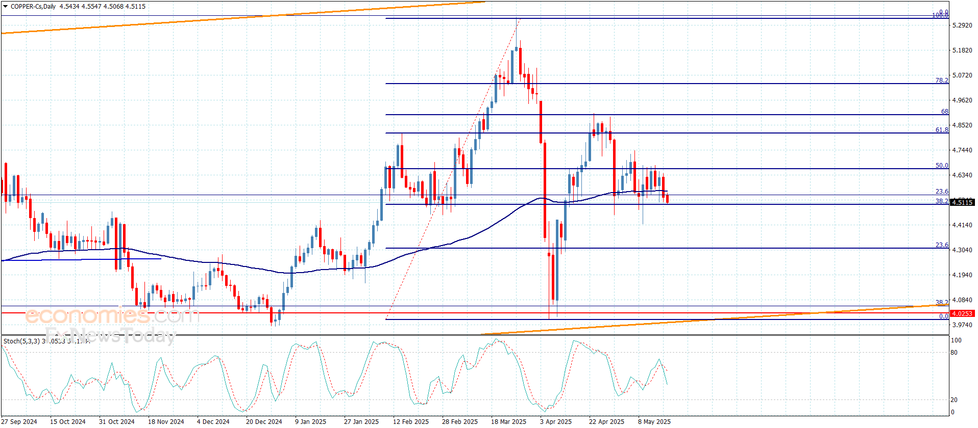 Copper price began forming a negative move, activating with the negativity of the main indicators, to settle near the extra support at $4.5000, facing negative pressures will increase the chances for breaking the current support, to open the way towards targeting extra negative stations, which might begin at $4.4500 reaching $4.3100.
