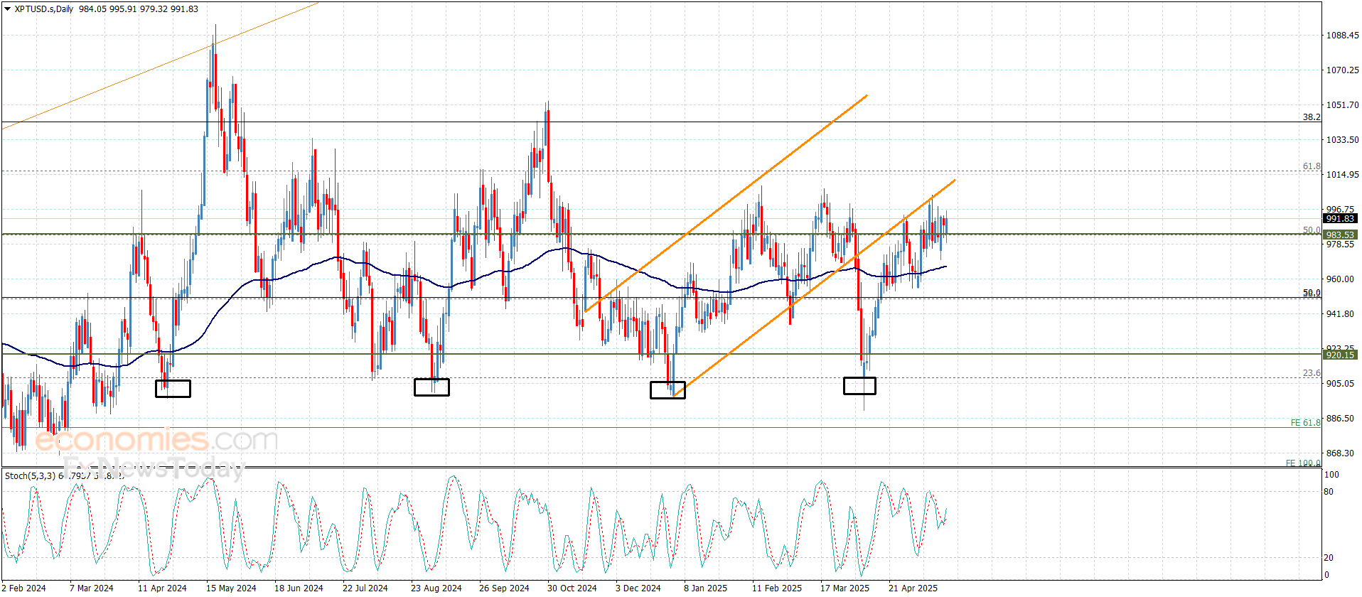Platinum price lost its negative momentum in its last trading, to repeat forming mixed trading by its stability above $983.00 level, limiting the trading tightly between this obstacle and $1010.00 level that represents the extension of the resistance that appears in the above image.
