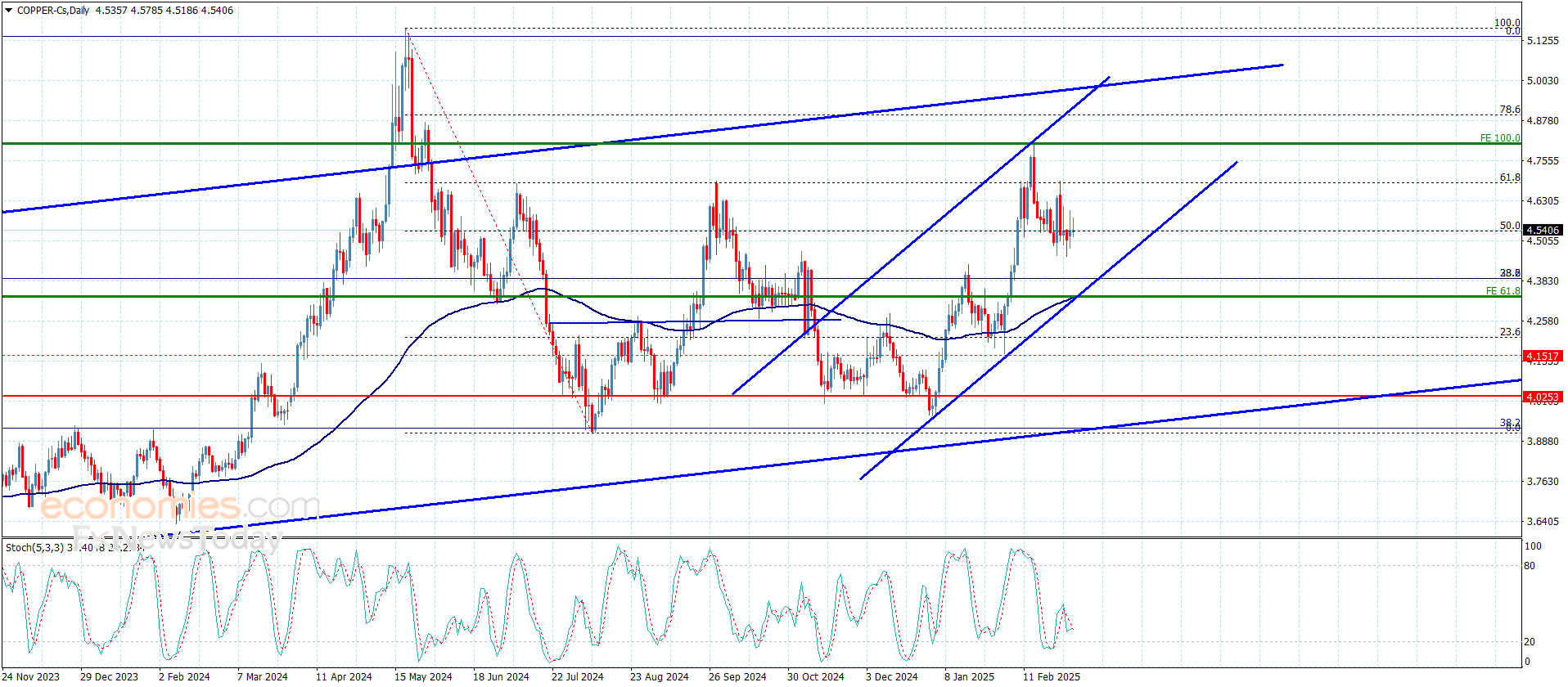 No news for copper price, to continue providing slow sideways trades by settling near 4.5400$, affected by the contradiction between the major indicators until this moment, reminding you that the frequent stability below 4.6800$ barrier reinforces the chances of resuming the negative correction that might target 4.3900$ level soon, followed by reaching the minor bullish channels’ support line at 4.3200$.