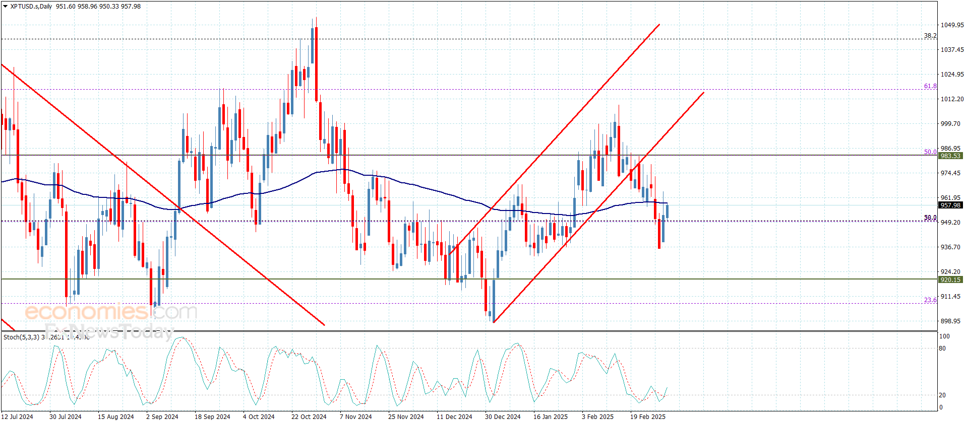Platinum price started to get the positive momentum, to start covering the recently suffered losses, noticing its fluctuation near the MA55 at 959.00$.