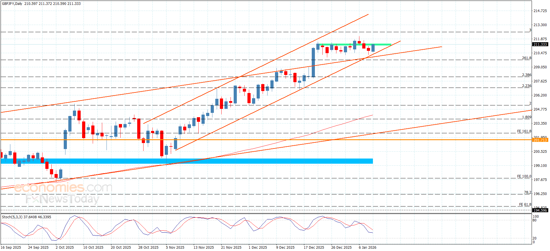 Despite facing negative pressure, the GBPJPY pair is stable above the minor bullish channel’s support at 210.35, which makes us keep the bullish scenario again.