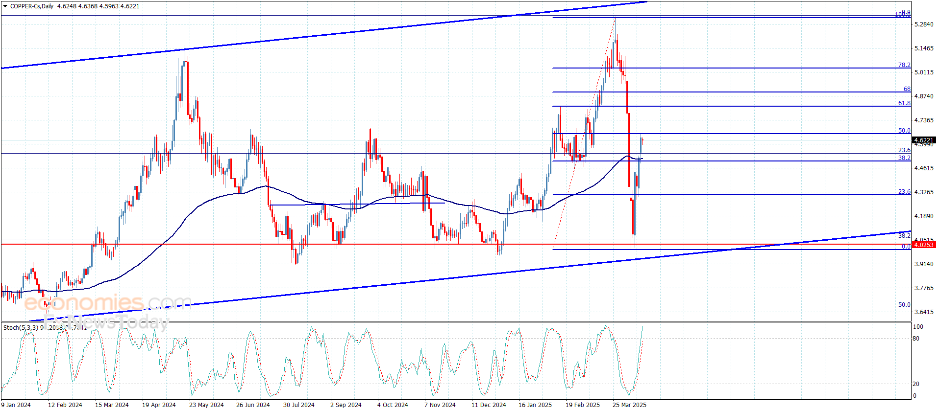 Providing positive momentum by the main indicators, and the repeated stability above the mentioned support will increase the chances for surpassing the barrier at 4.6600$, opening the way for recording new positive gains that might extend to $4.7500 reaching 61.8%Fibonacci correction level near $4.8200.