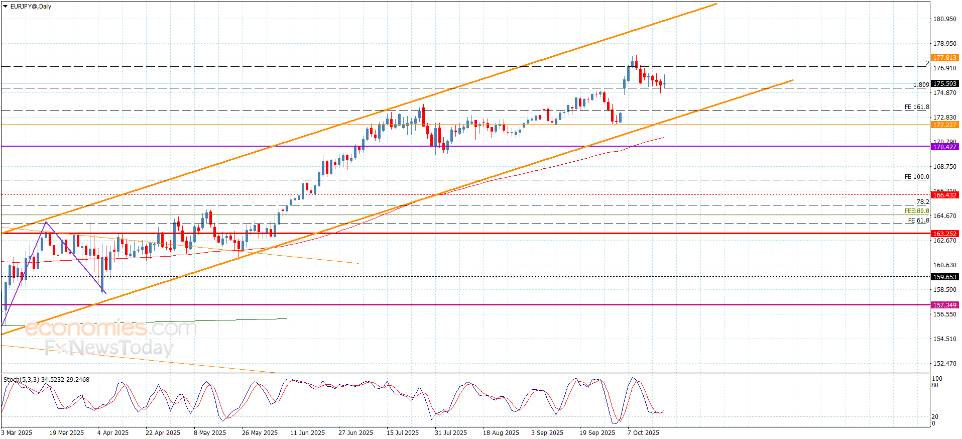 The EURJPY pair ended Friday’s trading by providing new positive close above the extra support at 175.20 level, facing the negative pressure and the continuation of the previously suggested bullish track.
