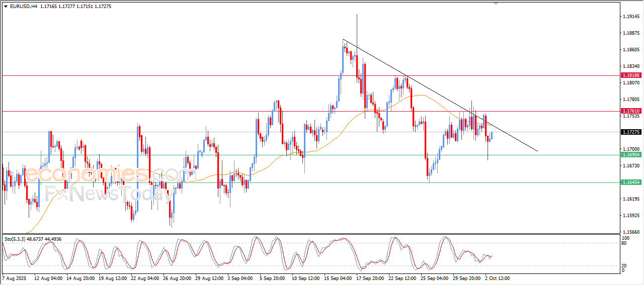 The (EURUSD) rose in its last intraday trading, taking advantage of the stability of 1.1690 support, which was our suggested target in our previous analysis. This rise was supported by the emergence of positive signals on the relative strength indicators, opening the way to recover yesterday’s losses.