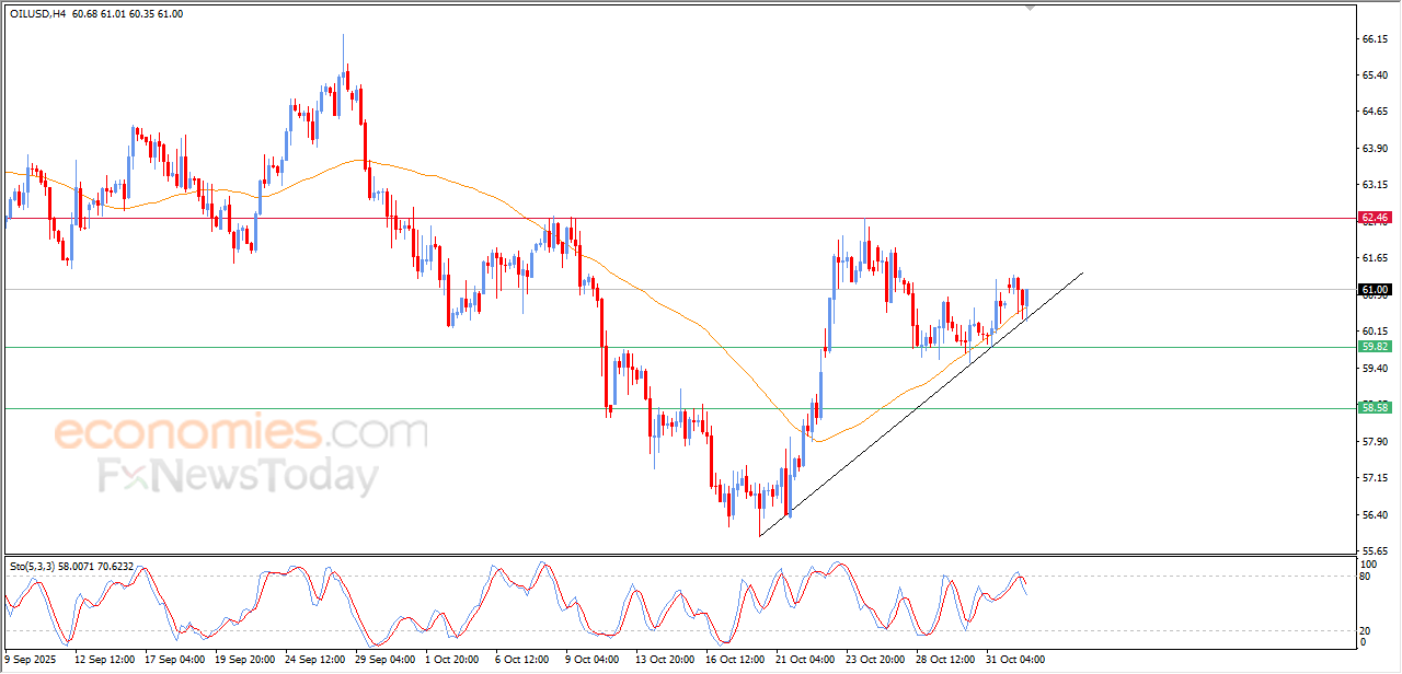 The (crude oil) rose in its last trading on the intraday basis, as it leaned on the support of EMA50, which provided bullish momentum that helped it to achieve these gains, accompanied by its leaning on bullish corrective trendline on the short-term basis, reinforcing this bullish momentum, on the other hand, we notice the emergence of the negative signals on the relative strength indicators, after reaching overbought levels, which might reduce the upcoming gains.