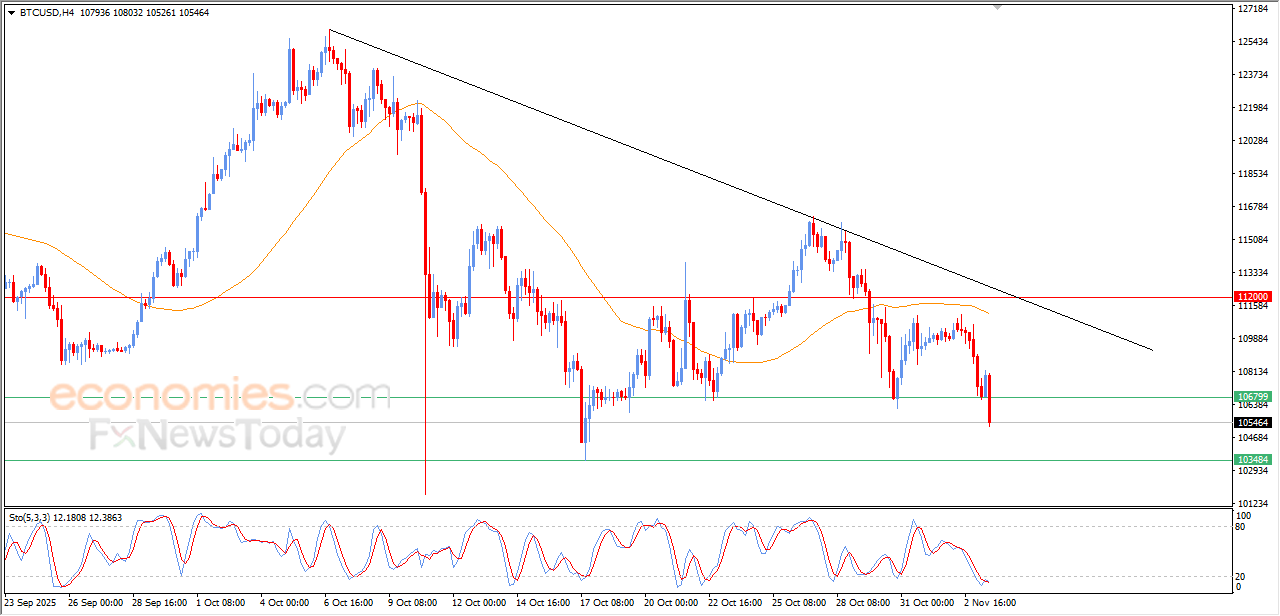 The (BTCUSD) price declined in its recent intraday trading, breaking the key support at $106,800, amid the dominance of the bearish trend on the short-term basis and its trading alongside trendline, with the continuation of the negative pressure that comes from its trading below EMA50, on the other hand, we notice the emergence of the positive crossover, after reaching oversold levels, which might reduce the upcoming losses.