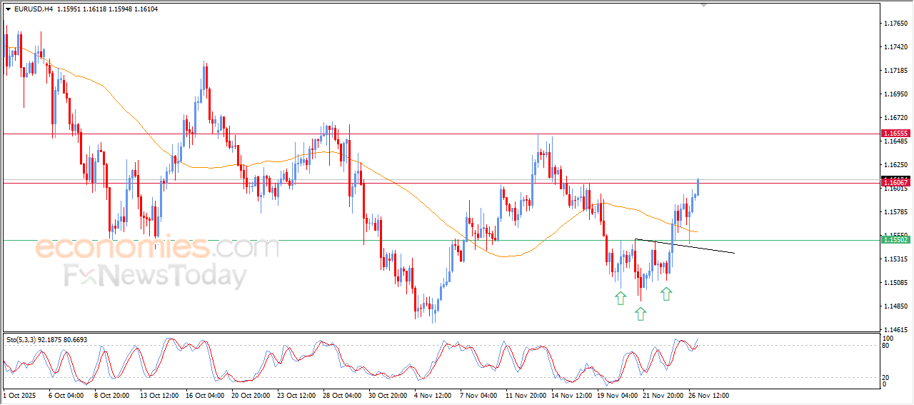 The (EURUSD) price continued its rise in its last intraday trading, attacking 1.1605 resistance, which represents our potential target in our previous analysis, this momentum is supported by the trading above EMA50, representing the dynamic support that reinforces the stability of bullish trading.