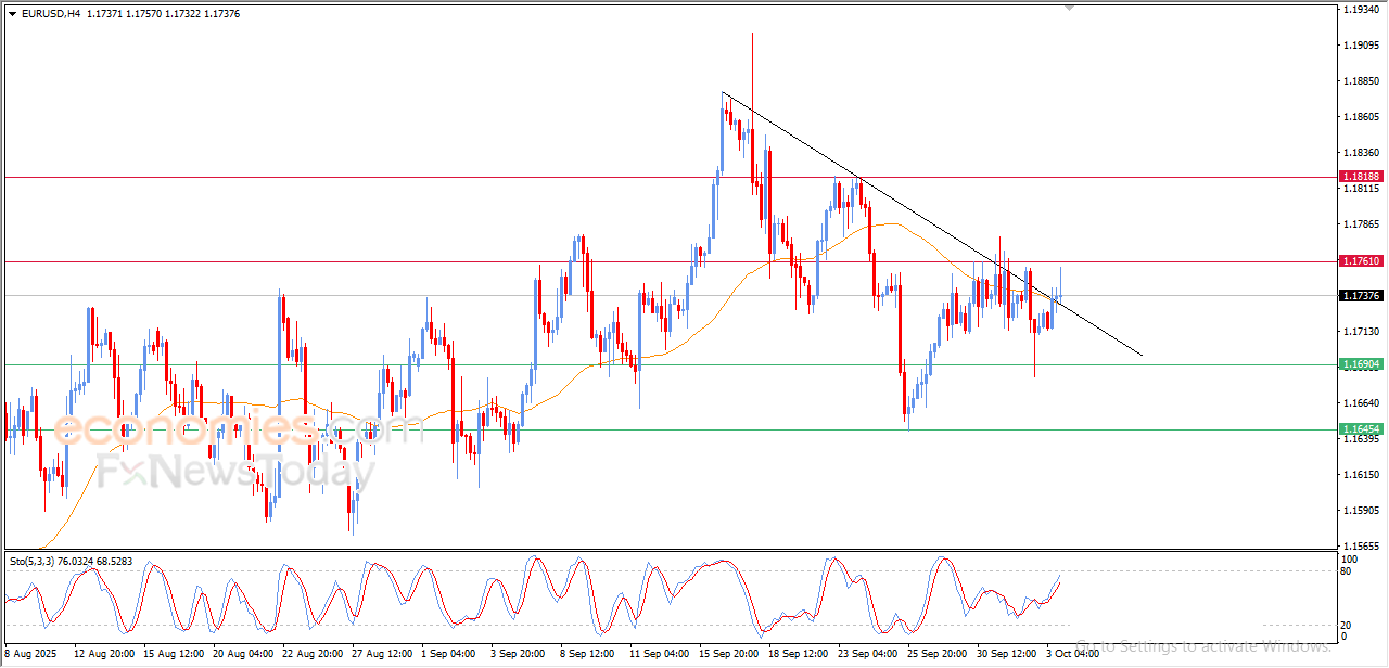 The (EURUSD) witnessed fluctuated trading on its last intraday levels, attempting to get rid of the negative pressures due to breaching bearish corrective trend line on the short-term basis, accompanied by the attempt of surpassing the resistance of its EMA50, supported by the emergence of the positive signals on the relative strength indicators.