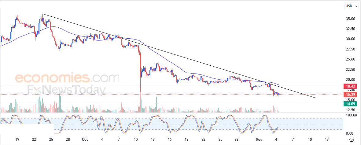 Therefore, we expect the cryptocurrency to decline in its upcoming intraday trading as long as the resistance level of $18.45 holds, targeting the support level of $14.00.