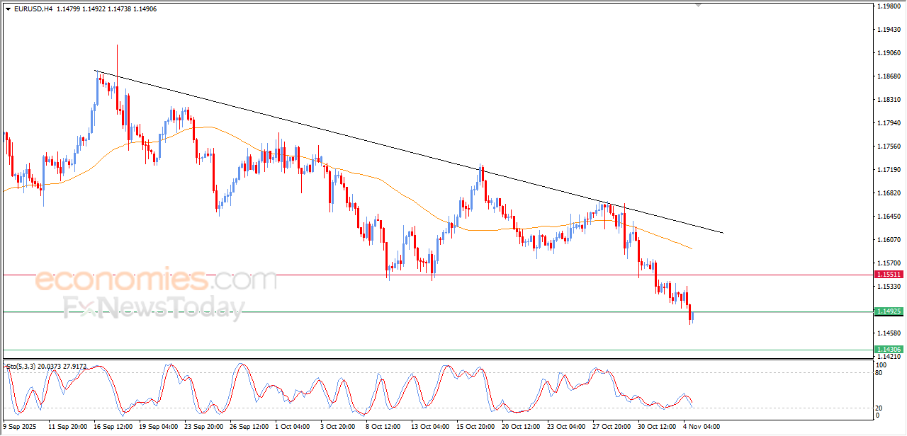The (EURUSD) rose in its last intraday trading, to recover some of its previous losses, amid the continuation of the negative pressure due to its trading below EMA50, under the dominance of the main bearish trend, besides the emergence of the negative signals on the relative strength indicators, after offloading its oversold conditions.