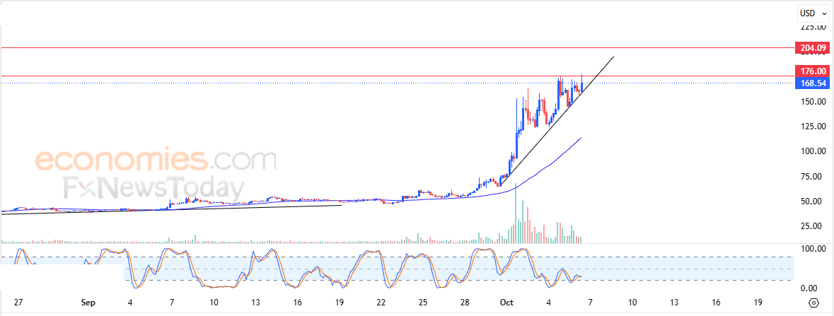 Therefore, we expect the cryptocurrency to rise in the coming sessions, particularly if it breaks above the mentioned resistance of 176.00, targeting the next resistance level at 204.00.