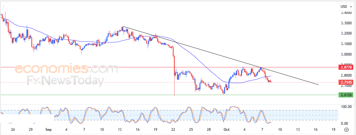 Therefore, we expect the cryptocurrency to fall in upcoming trading sessions, as long as resistance holds at 2.8778, targeting the key support level of 2.6126.