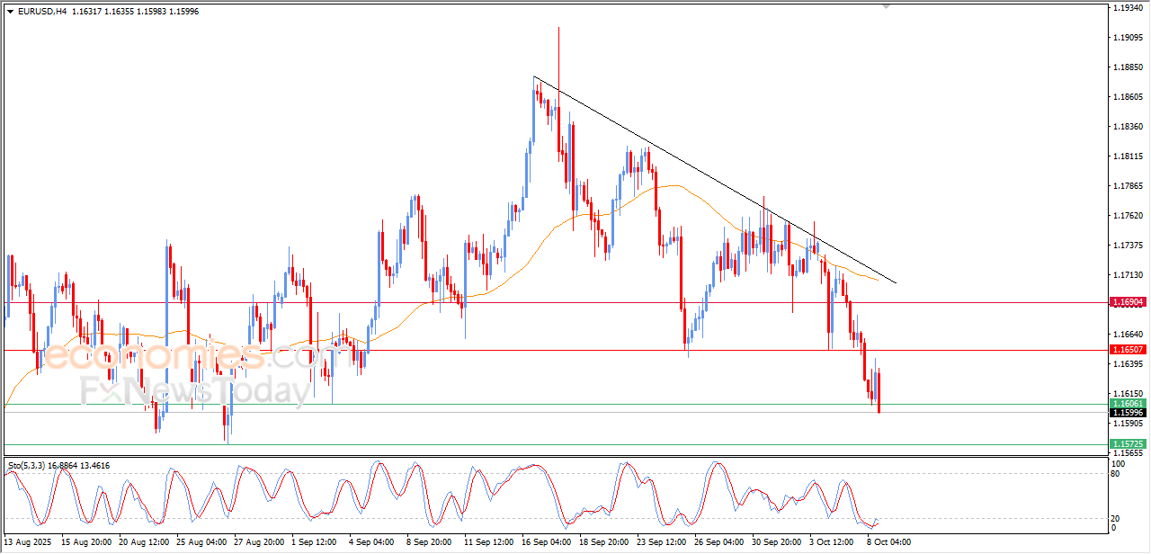 The (EURUSD) declined in its last intraday trading, breaking 1.1600 support, amid the dominance of the bearish correctional trend on the short-term basis with the continuation of the negative pressure due to its trading below EMA50, this decline came despite the emergence of the positive signals on the relative strength indicators, after reaching oversold levels, which indicates the strength of the negative momentum around the price.