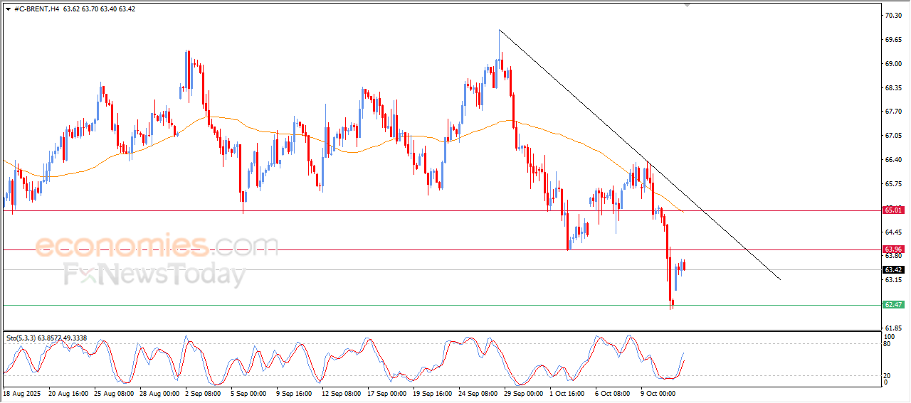 Brent crude oil prices declined in their last intraday trading, amid the stability of the key resistance at $63.95, amid the continuation of the negative pressure due to its trading below EMA50, and under the dominance of the main bearish trend on the short-term basis and its trading alongside trendline, and it witnessed previous bullish rebounds that aimed to offload the oversold conditions on the relative strength indicators, and the price lost its bullish momentum gradually to begin the bearish movement.