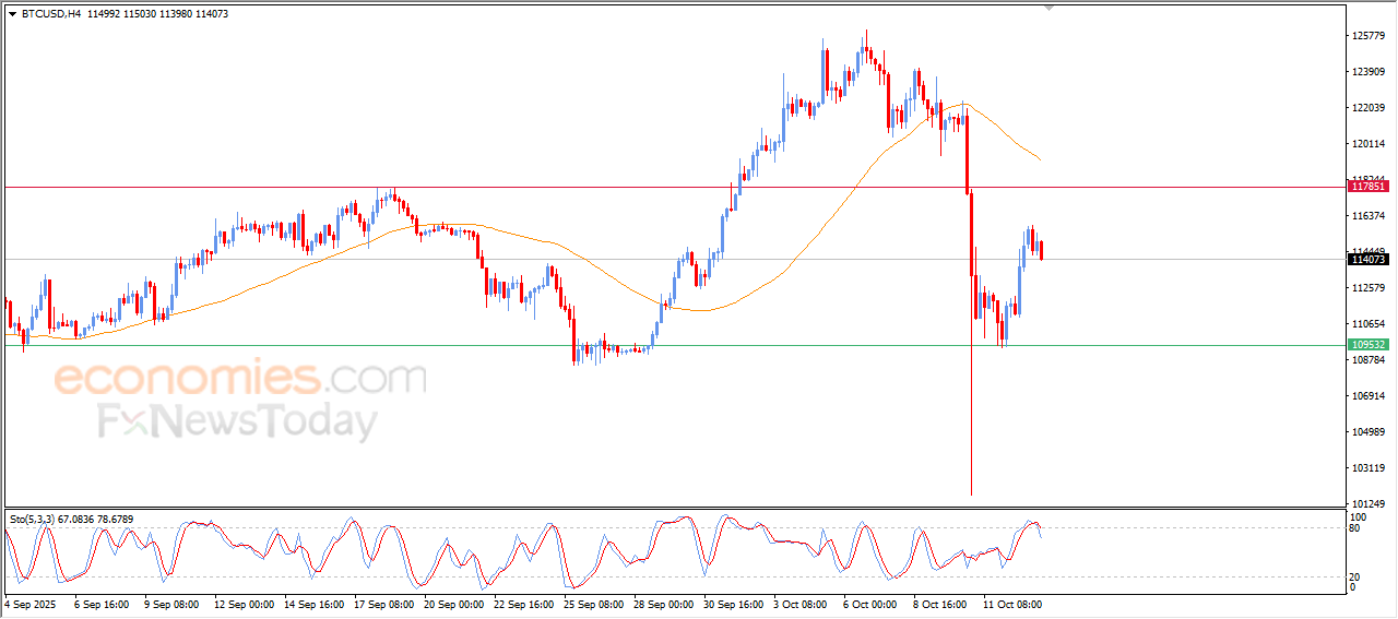 Bitcoin (BTCUSD) prices declined in their last intraday trading, surrendering to the surrounding negative pressure, first: the dominance of bearish corrective wave on the short-term basis, with the continuation of the negative pressure due to its trading below EMA50, besides the beginning of forming negative divergence on the relative strength indicators, after reaching overbought levels, exaggeratedly compared to the price movement, with the emergence of the negative signals from them.