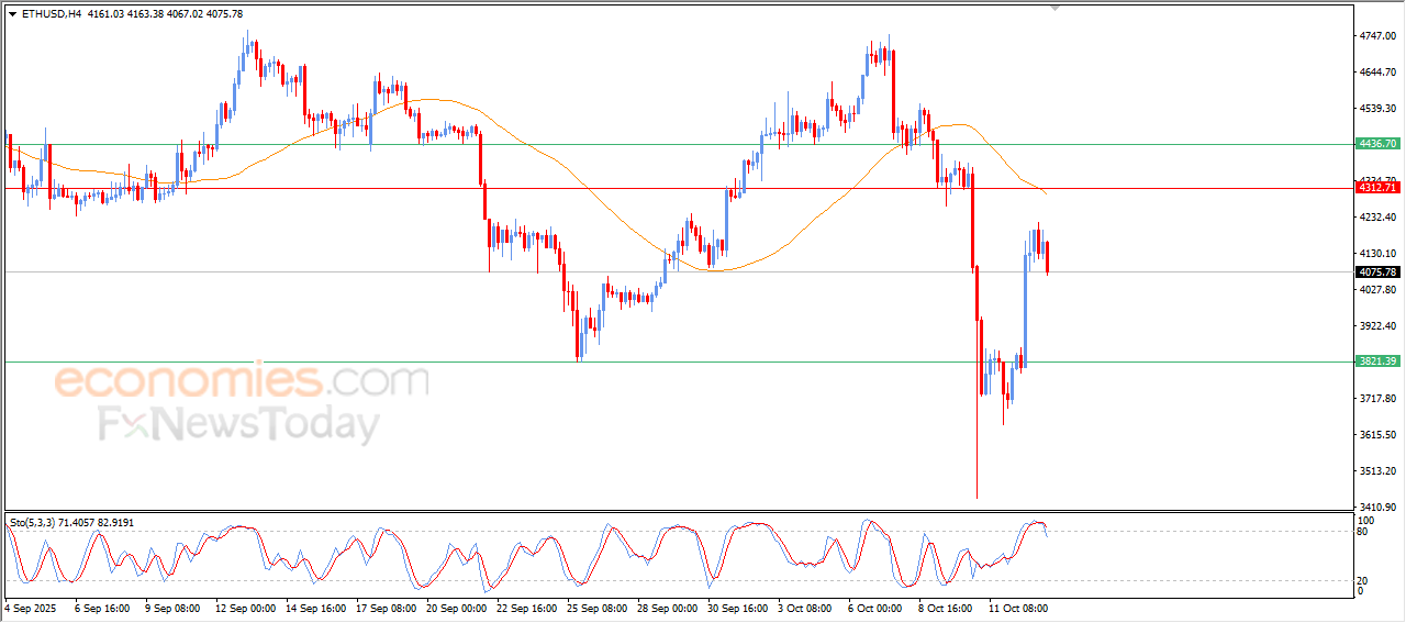 The price of (ETHUSD) declined in its last intraday trading, with the emergence of negative signals on the relative strength indicators, after forming negative divergence after reaching overbought levels, exaggeratedly compared to the price move, intensifying the negative pressure on the pressure, especially with the continuation of the negative pressure due to its stability below EMA50, which reduces the chances of the price’s recovery on the near-term basis, amid the dominance of steep bearish wave on the short-term basis.