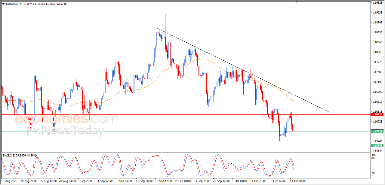 The (EURUSD) settled low in its last intraday trading, after reaching our morning target at 1.1575, preparing to break it, amid the emergence of the negative signals on the relative strength indicators after reaching overbought levels, amid the dominance of the short-term main bearish trend and its trading alongside supportive trendline for today.