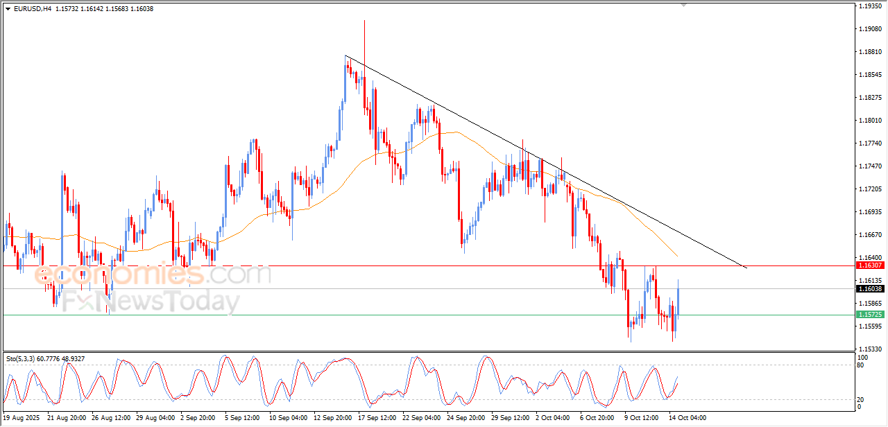 The (EURUSD) rose high in its last intraday trading, to settle again above the critical support at 1.1575, supported by the emergence of the positive signals on the relative strength indicators, after reaching oversold levels, but the price remains under negative pressure due to its trading below EMA50, and under the main bearish trend on the short-term basis and its trading alongside trend line.