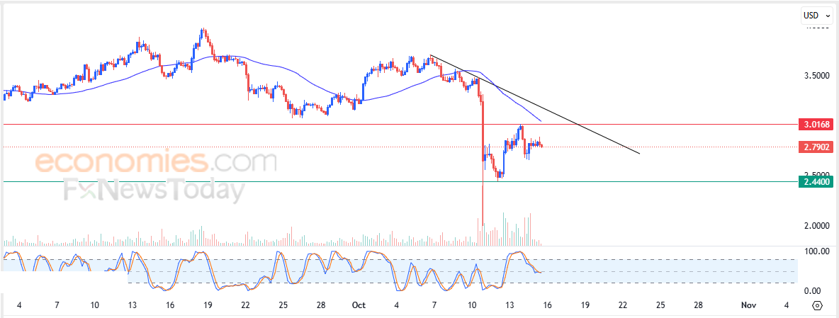 Therefore, we expect the cryptocurrency to decline in its upcoming intraday trading as long as the resistance level of 3.0168$ holds, targeting the key support level of 2.4400$.