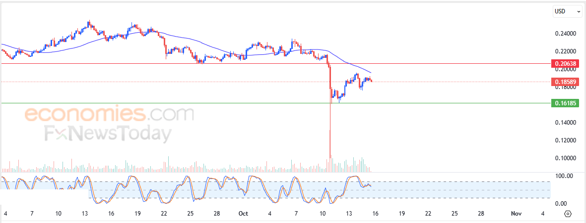 Therefore, we expect the cryptocurrency to decline in its upcoming intraday trading as long as the resistance level of 0.20638 holds, targeting the support level of 0.16185.
