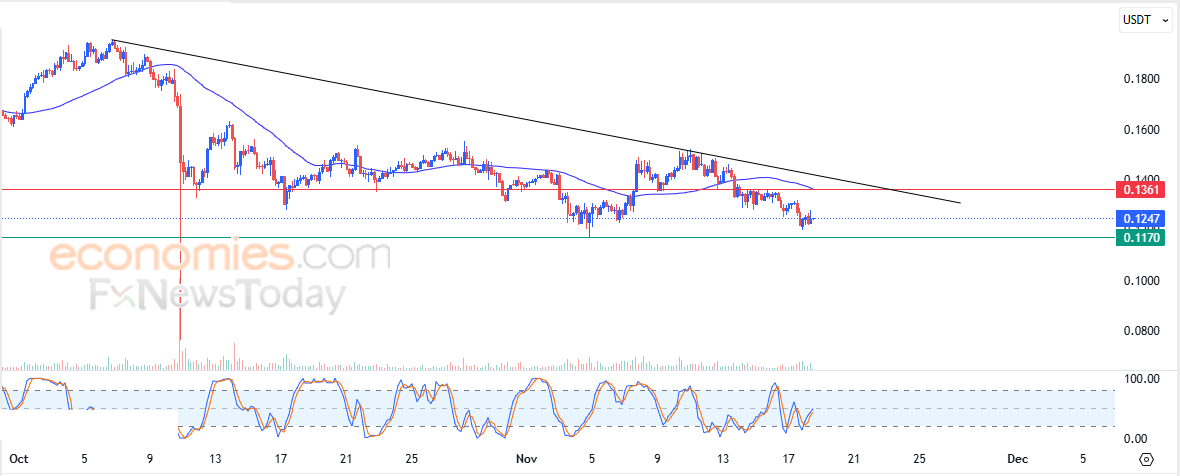 Therefore, we expect the price to decline in the upcoming intraday sessions, as long as resistance at 0.1360 holds, targeting the support level at 0.1170.