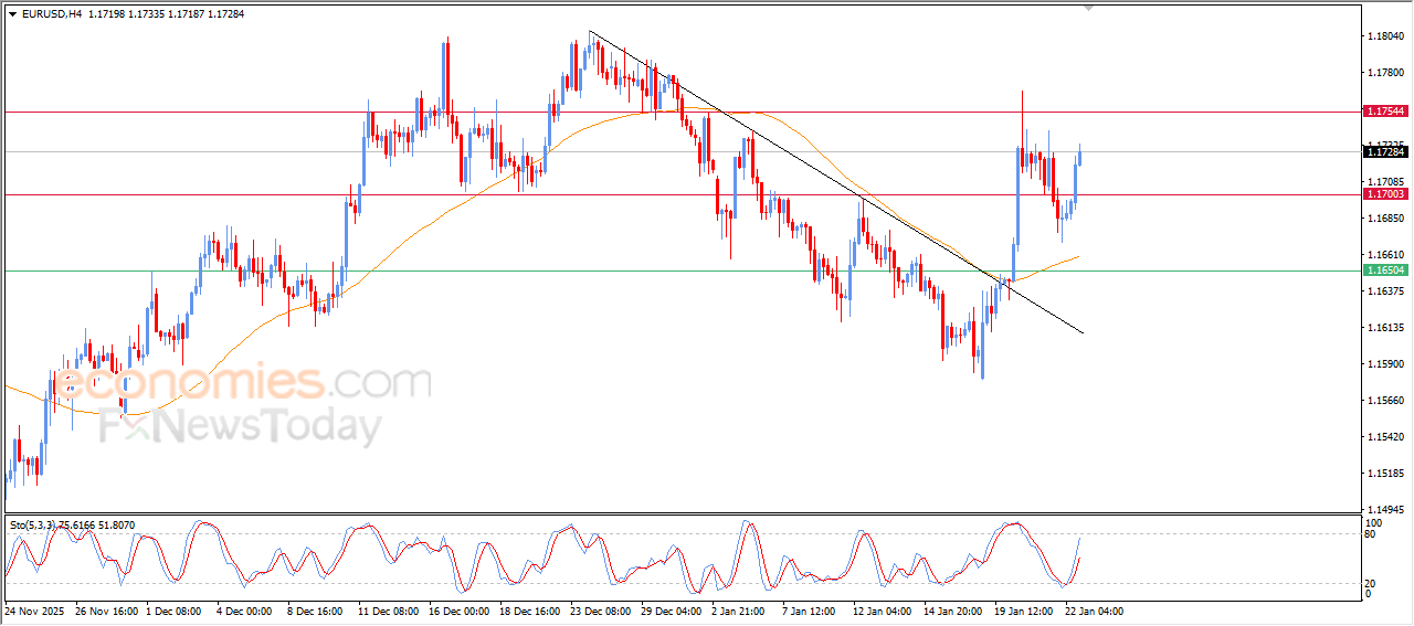 (EURUSD) price extended its gains in its last intraday trading, supported by its continuous trading above EMA50, with the emergence of positive signals from the relative strength indicators, after forming positive divergence, affected by breaching bearish corrective trend line on a short-term basis.