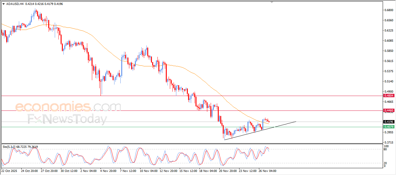 Therefore we expect the cryptocurrency to rise in its upcoming intraday trading, especially as long as it remains stable above 0.4080, targeting the first resistance level at 0.4460.