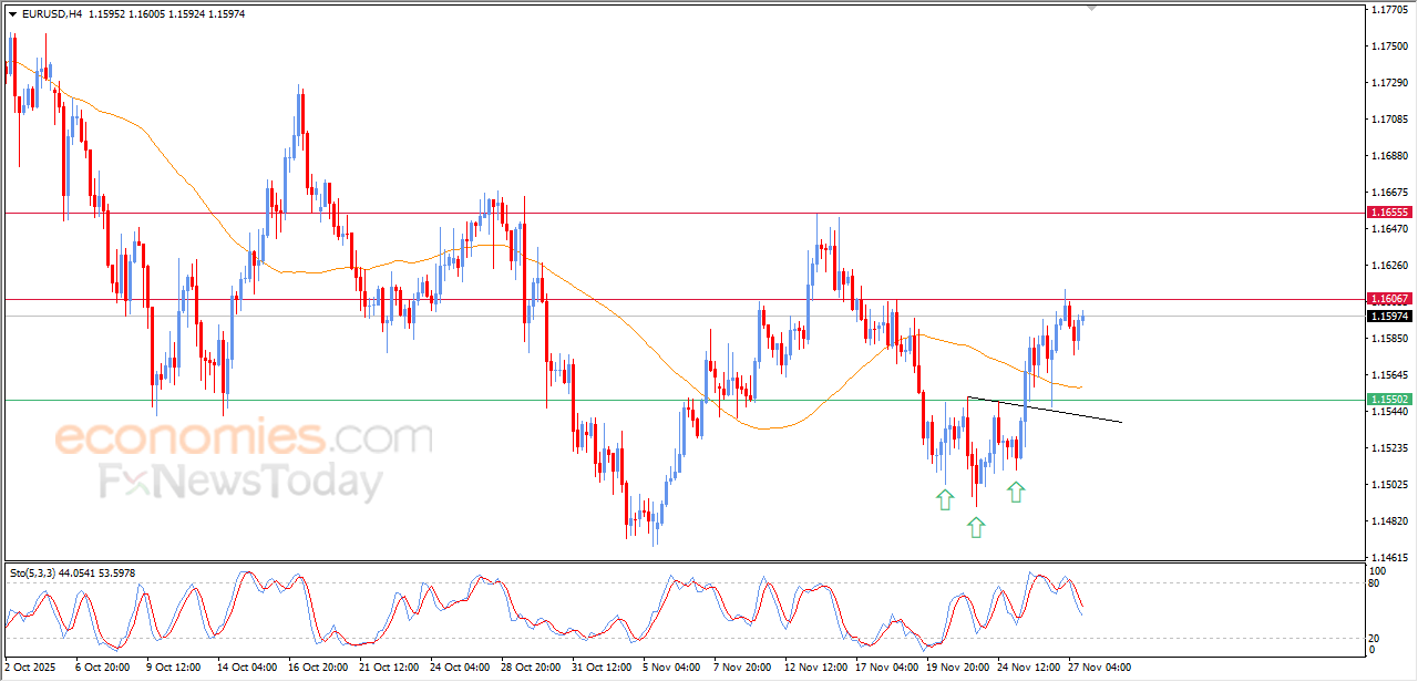 The (EURUSD) rose in its last intraday trading, after offloading its overbought conditions on the relative strength indicators, opening the way for achieving more gains on the near-term basis, preparing to attack 1.1695 resistance, amid the continuation of the positive pressure that comes from its trading above EMA50, and under the dominance of bullish corrective wave on the short-term basis.