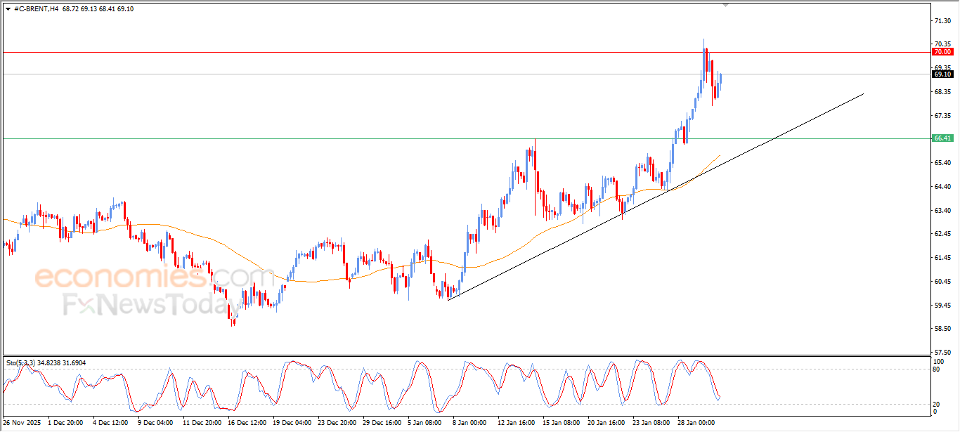 Brent prices rose in their last intraday trading, with the emergence of positive overlapping signals on relative strength indicators, after reaching exaggerated oversold levels compared to the price move, indicating the beginning of forming positive divergence from there, reinforcing the positive pressures on the price, amid the continuation of the dynamic pressure that is represented by its trading above EMA50, under the dominance of the main bullish trend and its trading alongside supportive minor trend line for this path.