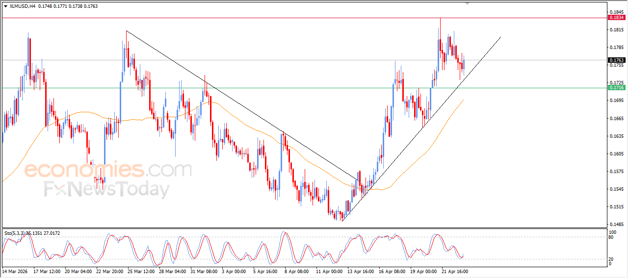 Therefore, our expectations indicate a rise in the cryptocurrency price during its upcoming intraday trading, as long as the support level at 0.1715 remains intact, targeting the resistance level at 0.1835.