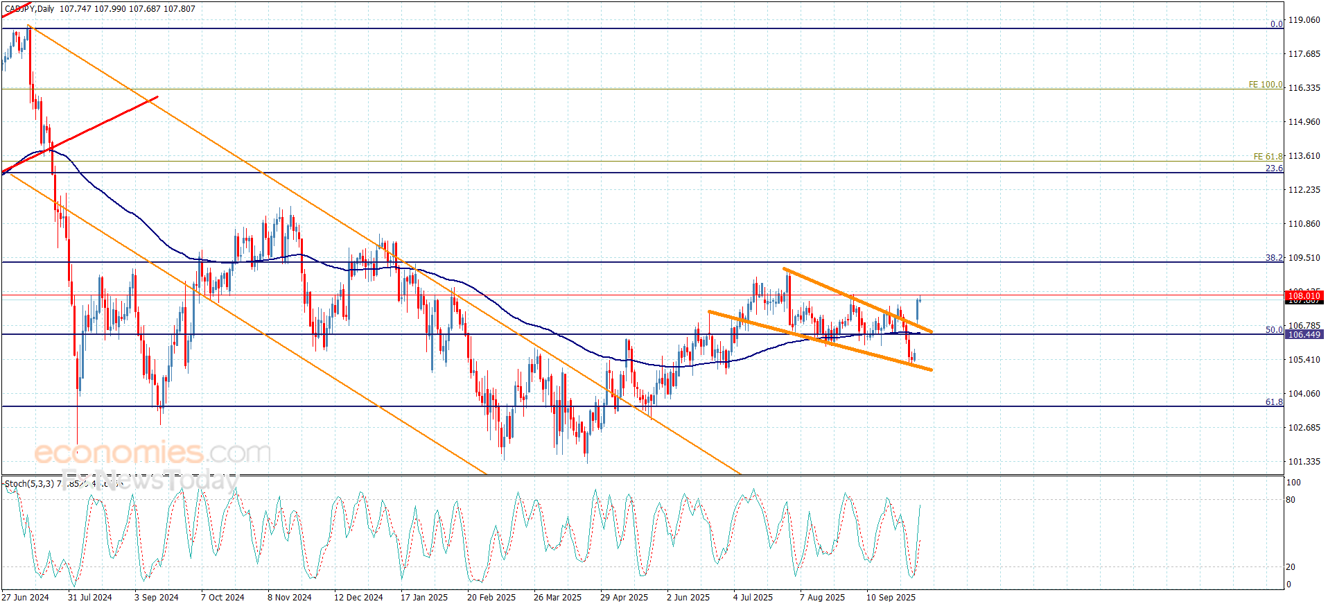 The expected trading range for today is between 107.55 and 108.40