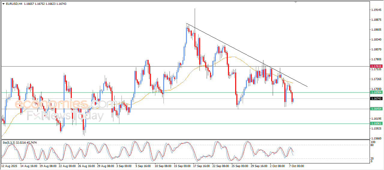 The price of (EURUSD) declined in its last intraday trading, to settle again below 1.1690, amid the continuation of the negative pressure due to its trading below EMA50, which prevents the price recovery many times, under the dominance of the bearish corrective trend on the short-term basis and its trading alongside trend line, besides the emergence of the negative signals on the relative strength indicators, after reaching overbought levels.