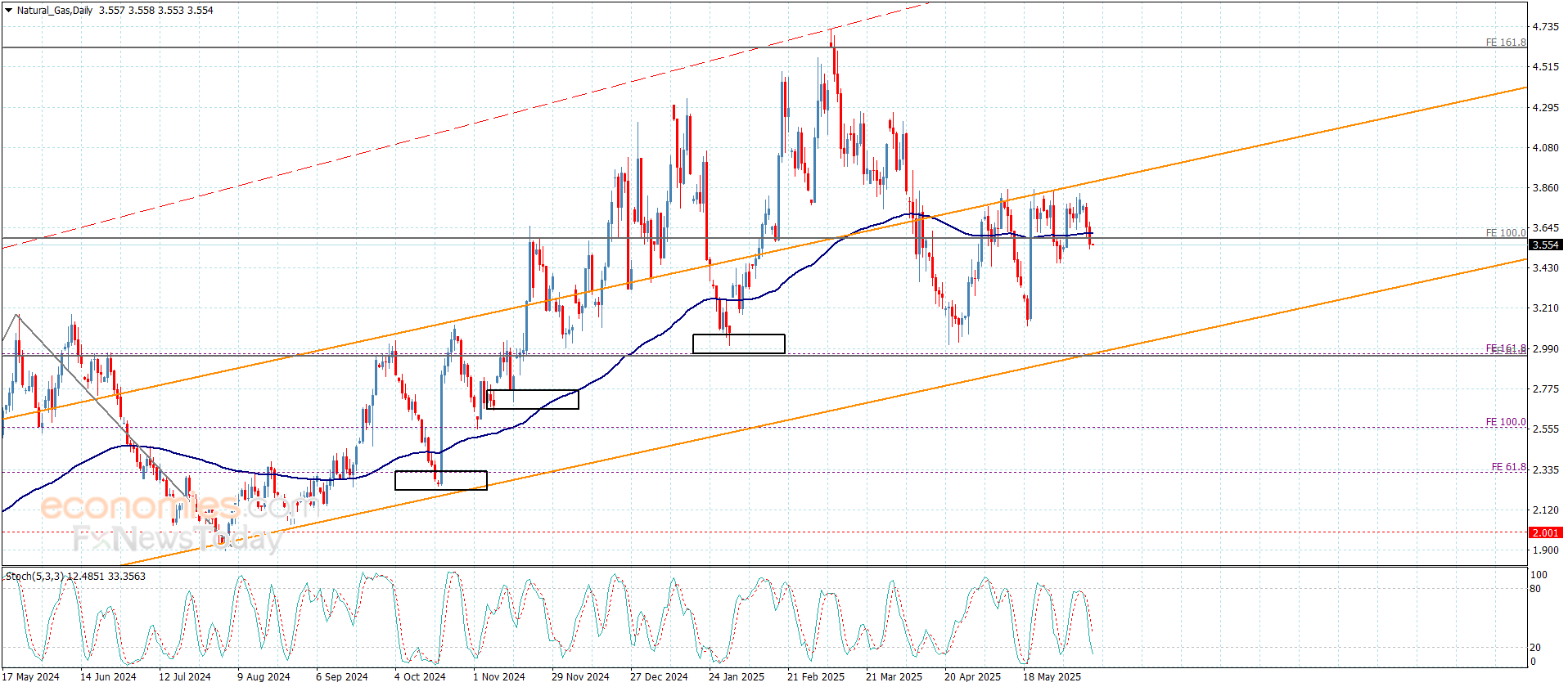 Natural gas price succeeded in confirming the dominance of the bearish bias by reaching below the moving average55 yesterday, to break the extra support at $3.600 as appears in the above image.
