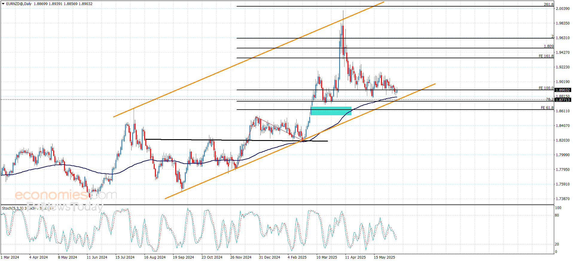 The EURNZD failed to record any new positive target, due to the continuation of the contradiction between the main indicators, to notice its approach from the moving average 55 at 1.8810, reinforcing the stability of the bullish channel’s support at 1.8785.