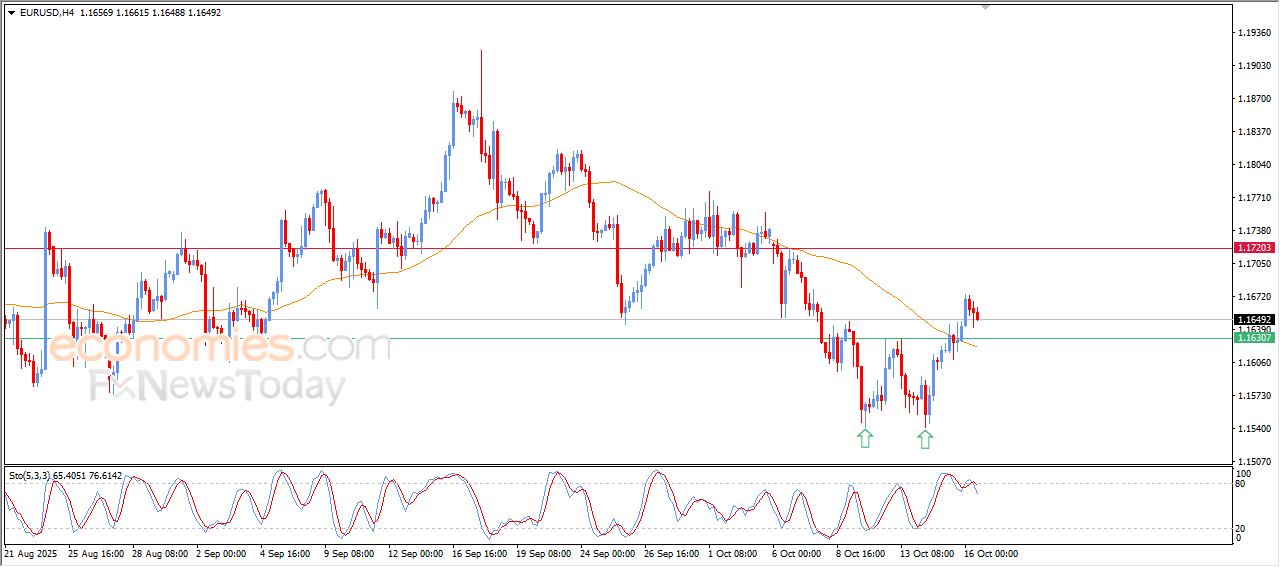 The price of (EURUSD) declined in its last intraday trading, to gather its previous rises and attempt to gain bullish momentum that might help it to recover and rise again, besides offloading its overbought conditions on the relative strength indicators, especially with the emergence of the negative signals, amid the continuation of the dynamic support due to its trading above EMA50, affected by bullish technical formation on the short-term basis (the double bottom pattern).